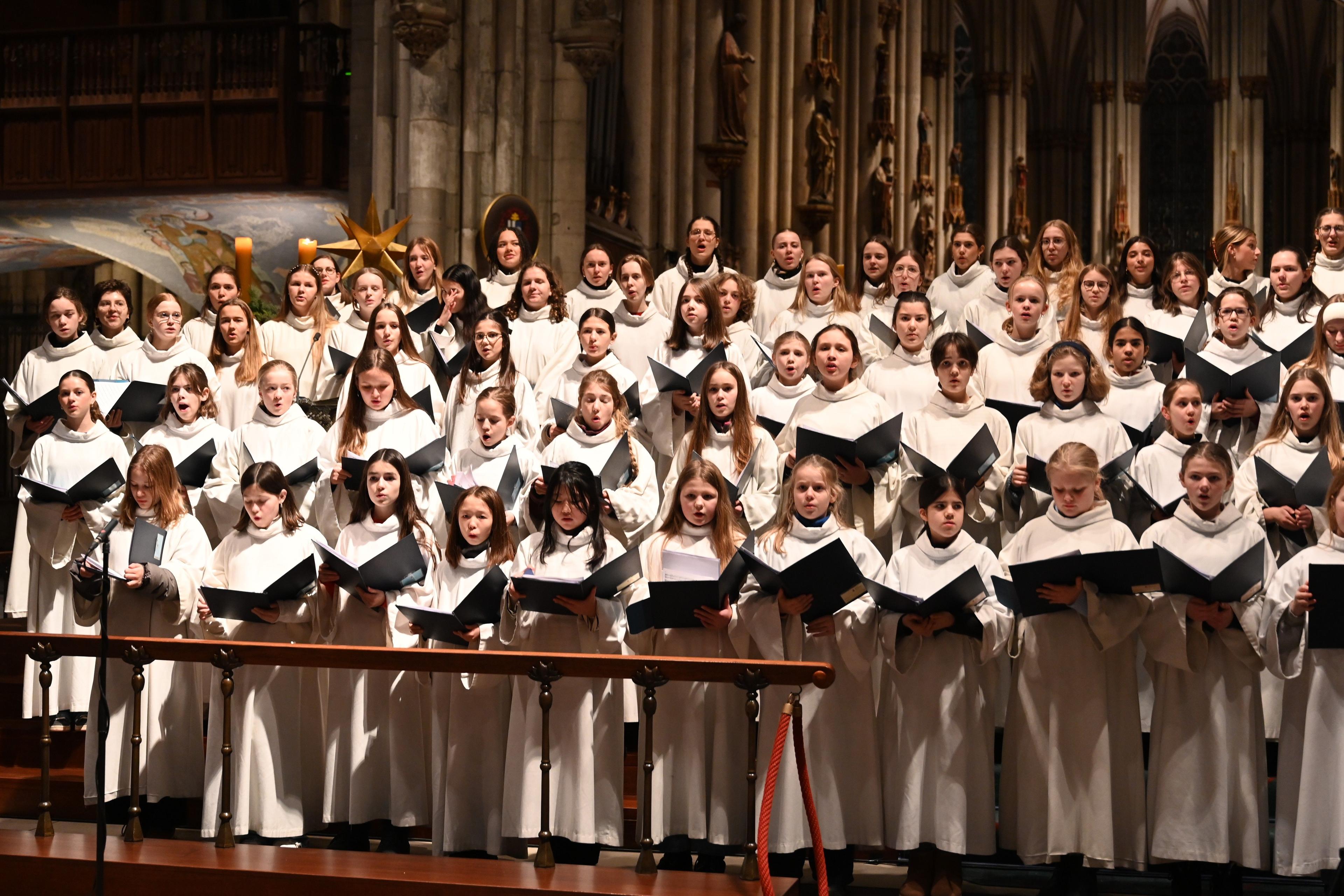 "Chrystos sja roshdaje", ruft der Chor am Ende seines Adventslieds in den bis auf den letzten Platz gefüllten Dom. Und aus dem Publikum kommt spontan ein "Slavimo joho" zurück. Christus wird geboren – lasst uns ihn verherrlichen! Die Kirchenbänke füllen diesmal auch viele ukrainische Zuhörer, die sich unter die Familien der Mädchen und Jungen der Kölner Dommusik gemischt haben. Denn wie immer wenige Tage vor Weihnachten geben diese unter der Leitung von Domkapellmeister Eberhard Metternich und Domkantor Oliver Sperling ein großes Adventskonzert mit mehr als 250 Mitwirkenden – auch als Dank an die Mitglieder des Förderkreises Kölner Dommusik.